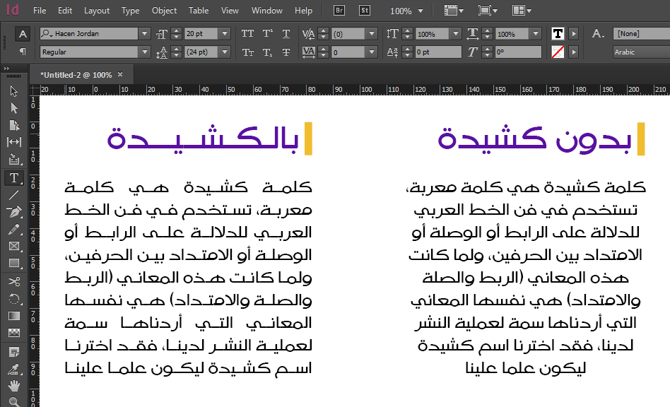 | استخدام الكشيدة في برنامج إنديزاين |